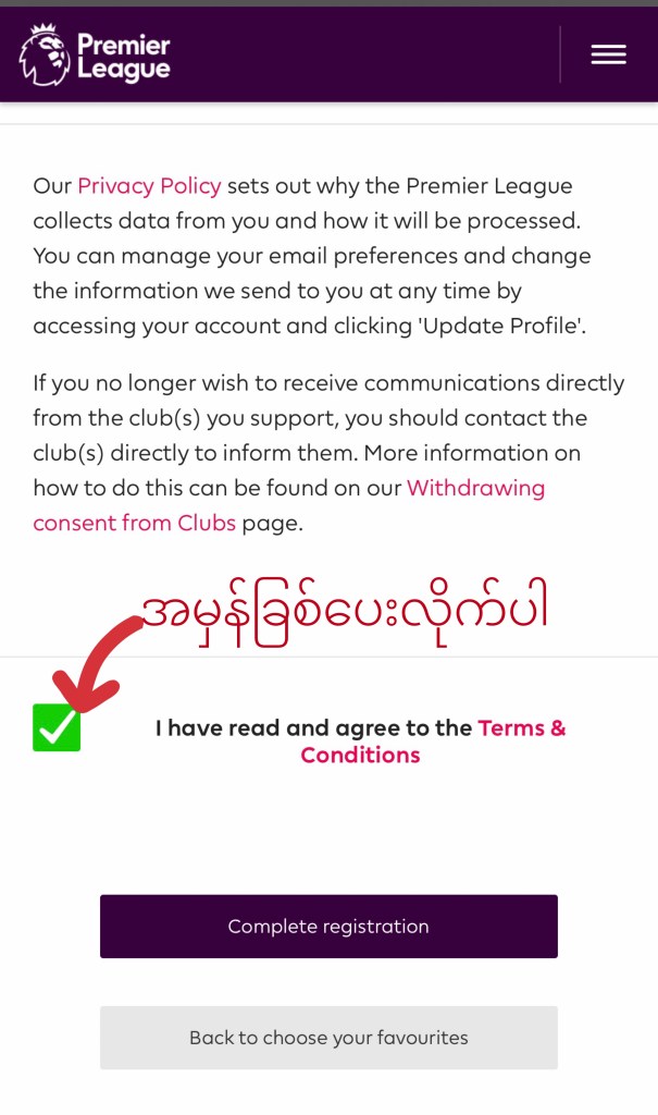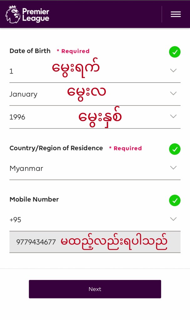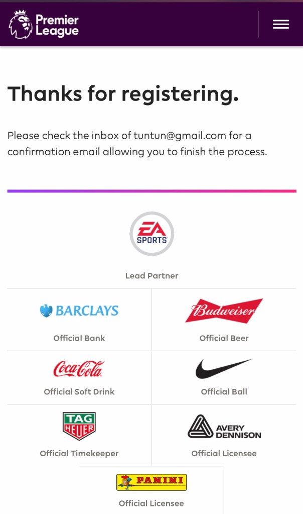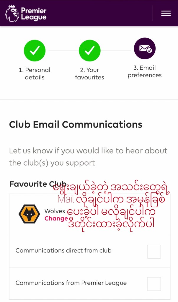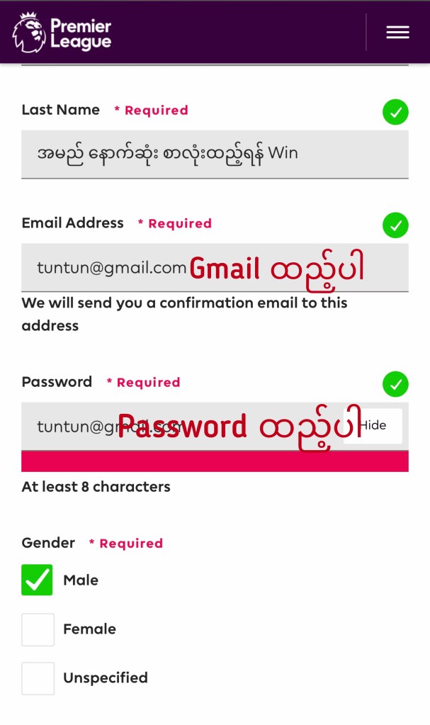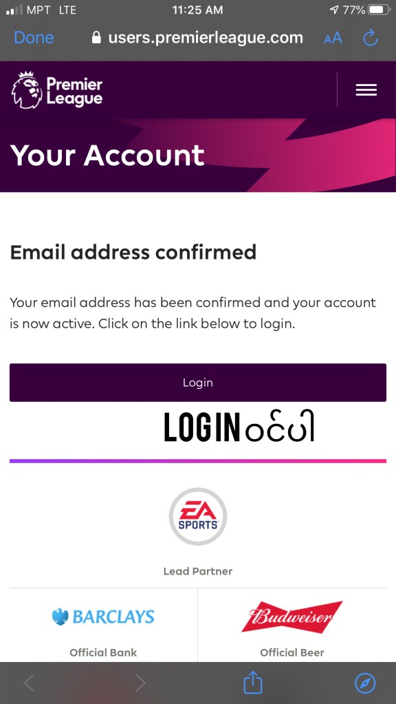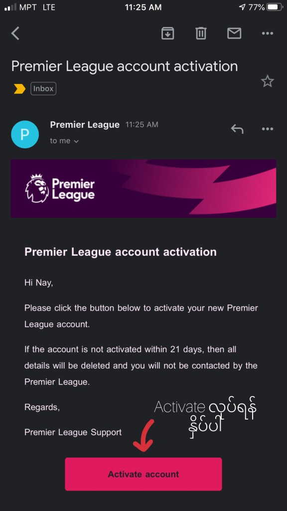Sign Up လုပ်ပြီးပါပြီ Activate လုပ်ရန် အတွက် မိမိအကောင့် ဖွင့်ခဲ့သော Email ထဲသို့ ဝင်ပါ ။ Premier League မှ Activate လုပ်ရန် Mail ဝင်နေပါလိမ့်မယ် ။မတွေ့ရပါက Mail Spam list ထဲသို့ ဝင်ကြည့်ပါ။