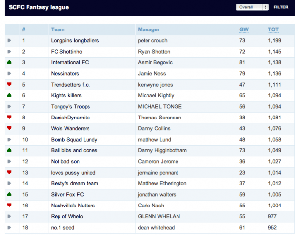 League ထဲက အသင်းတွေရဲ့ အမှတ်အများဆုံးကနေစပြီး ကြီးစဥ်ငယ်လိုက် စီတာပါ