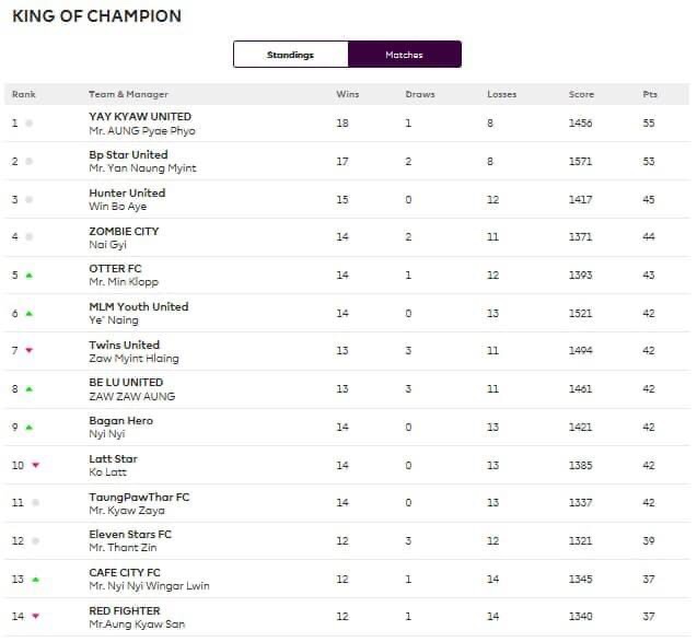 H2H Game week result H2H ရဲ့ အမှတ်ပေးဇယား တခုပါ