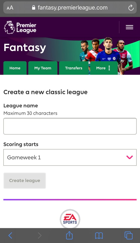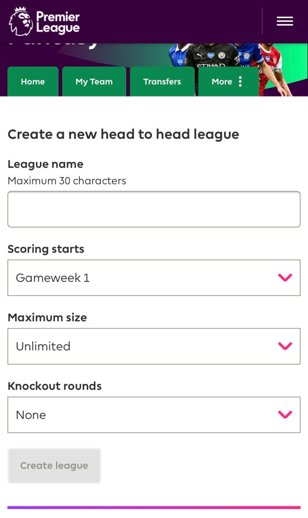 League name နေရာမှာ ကြိုက်နှစ်သက်ရာ အမည် ထည့်ပါ။ Create league ကို နှိပ်ပါ။