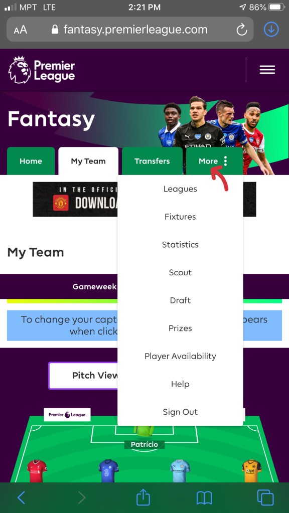 Browser တခုခုမှနေ၍ Login ဝင်ပြီးသွားပြီဆိုရင် More ထဲဝင်ပြီး Leagues ကိုရွေးပါ။