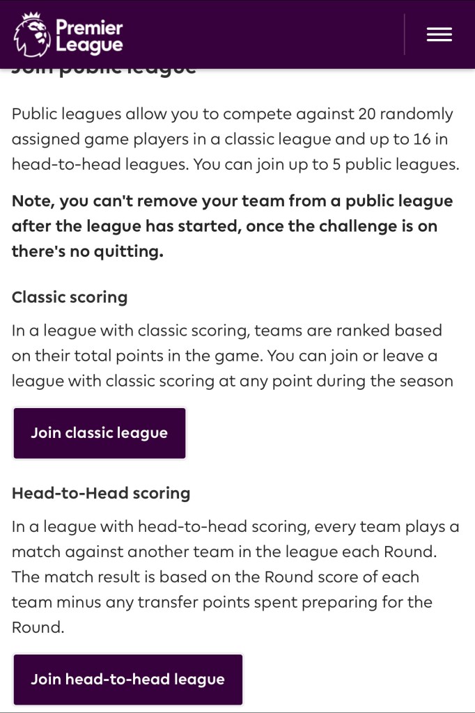 ကိုယ်ဘော်ဒါ မိတ်ဆွေ အပေါင်းအသင်းတွေနဲ့ သီးသီးသန့်သန့်ကစားမယ်ဆိုရင်တော့ ကိုယ်ပိုင် League တခုရှိဖို့လိုအပ်ပါတယ်။ Public League နဲ့ Private League ဆိုပြီး နှစ်မျိုးရှိပါတယ်။ Public League ကတော့ Official ကလုပ်ပေးထားတာကြောင့် အလွယ်တကူ ဝင်ရောက်နိုင်ပါတယ်။ Private league ဆိုရင်တော့ ကစားမယ်ဆို league code လိုပါတယ်။ ဒီနေရာမှာ တခုပြောချင်တာက Public ပဲဖြစ်ဖြစ် Private ပဲဖြစ်ဖြစ် ကစားနည်းနှစ်နည်းနဲ့ ကစားလို့ရပါတယ်။ Classic နဲ့ Head to Head ဆိုပြီးတော့ပါ။