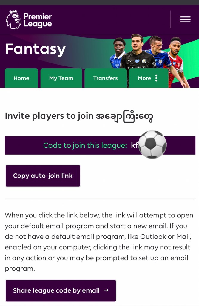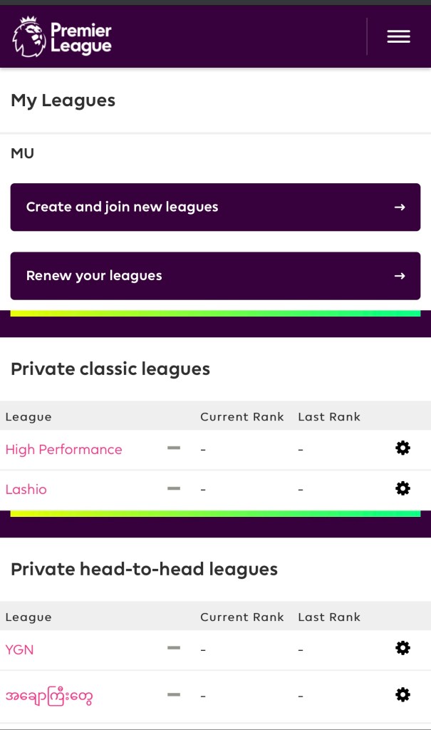 Public ဝင်သည် ပုံစံနှင့် တူတူဖြစ်ပါသည်။ Private League လုပ်ပါက Browser ကနေသာ ဝင်ပါ ။ login >> More >> league >>Create and join new league စသဖြင့် ဝင်ပါ။